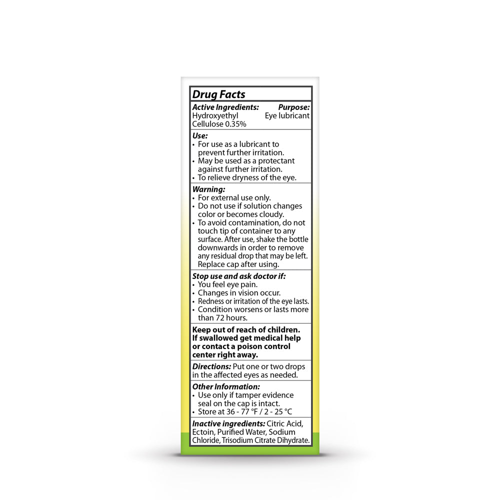 With the active Hydroxyethyl cellulose, quickly lubricates the eye by creating a more protective tear film.